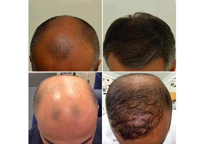 In alto, i risultati ottenuti dopo l’autotrapianto di capelli da un paziente di Istituto Helvetico Sanders. – In basso, il Trapianto di Hamid Faisal, uno dei tanto Trapianti di capelli eseguiti male in Turchia